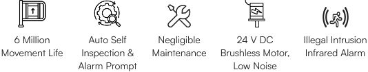 | Protection Function | Electromechanical anti-collision, infrared anti-pinch, wrong entry infrared alarm |